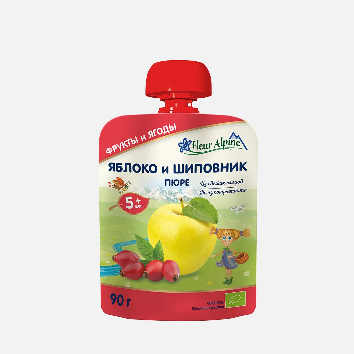 Пюре Флер Альпин Яблоко/шиповник с 5мес дой/пак/крыш 90г