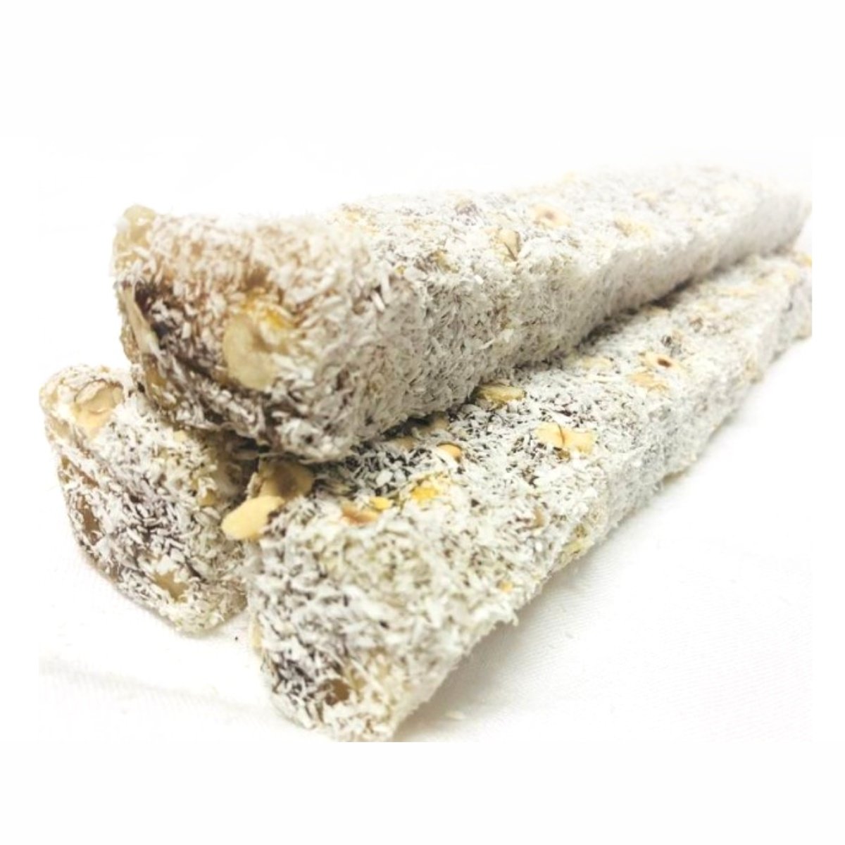 Сахар белый, вода питьевая, крахмал кукурузный, ядра орехов фундука, ароматизатор пищевой Апельсин, лимонная кислота.