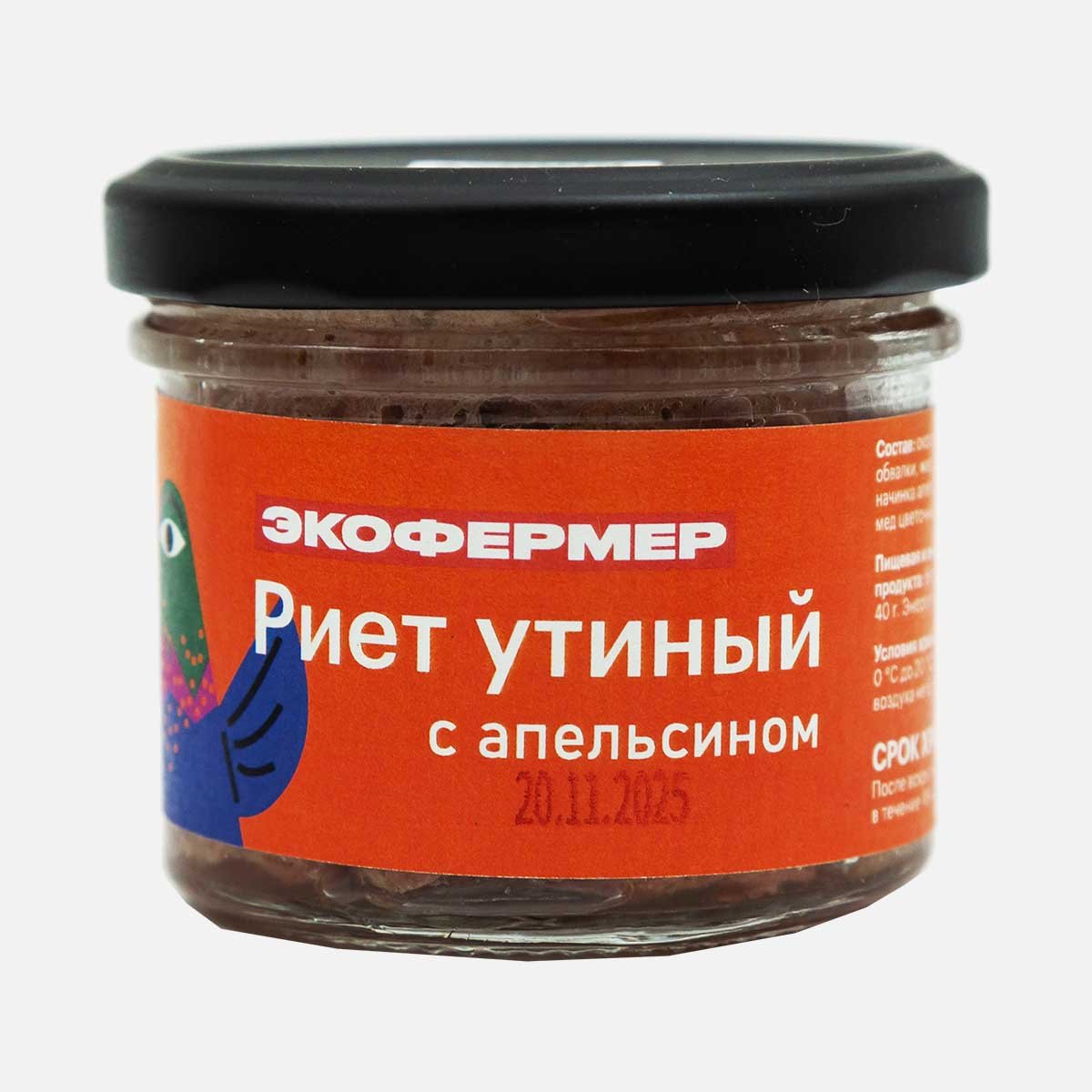 Окорок утиный с кожицей ручной обвалки, жир утиный, соль, перец, начинка термостабильная апельсиновая (груша, сахар белый, вода питьевая, загустители, лимонная кислота).