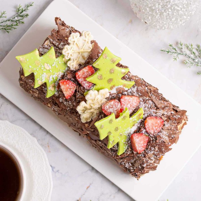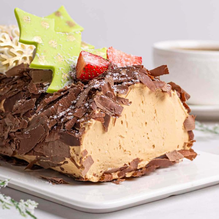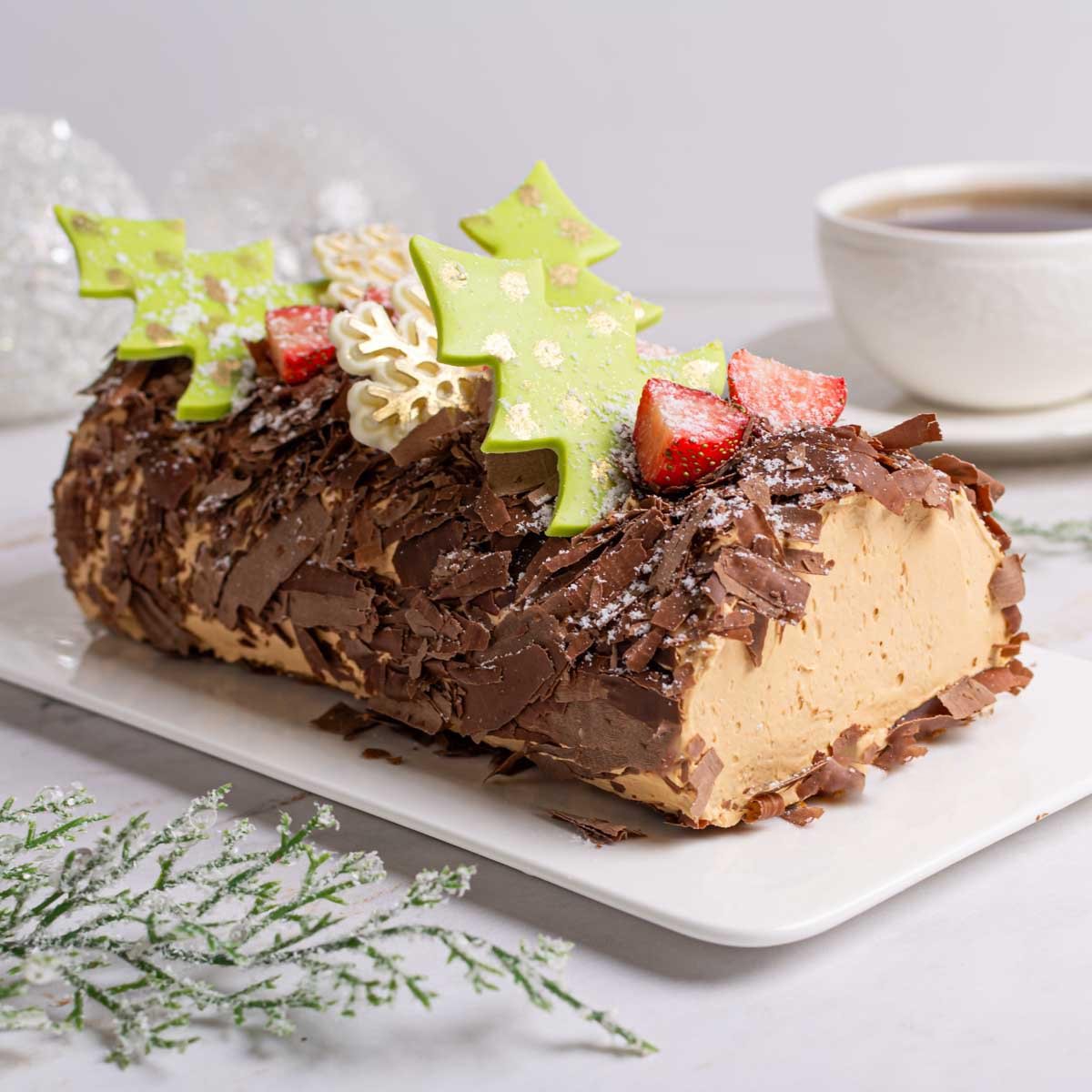 Бисквитное лакомство для всей семьи. Воздушное тесто с нежнейшей начинкой из варёного сгущённого молока, сливок и бананов. Мы покрываем изящный рулет кусочками темного шоколада, украшаем клубникой и сахарным декором. Эффектный десерт станет запоминающимся финальным аккордом на вашем празднике. Его богатый вкус и элегантный внешний вид не оставит вас равнодушными!
