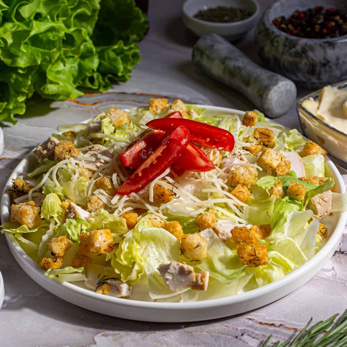 Салат Цезарь с курицей гриль вес