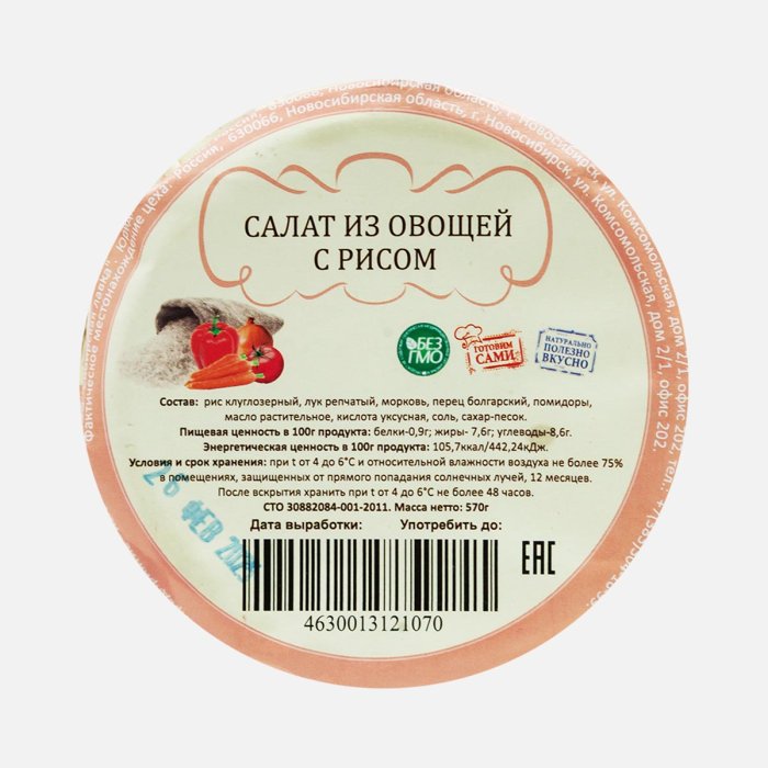 Салат из овощей с рисом ст/б 570г