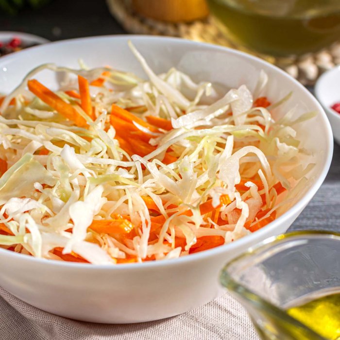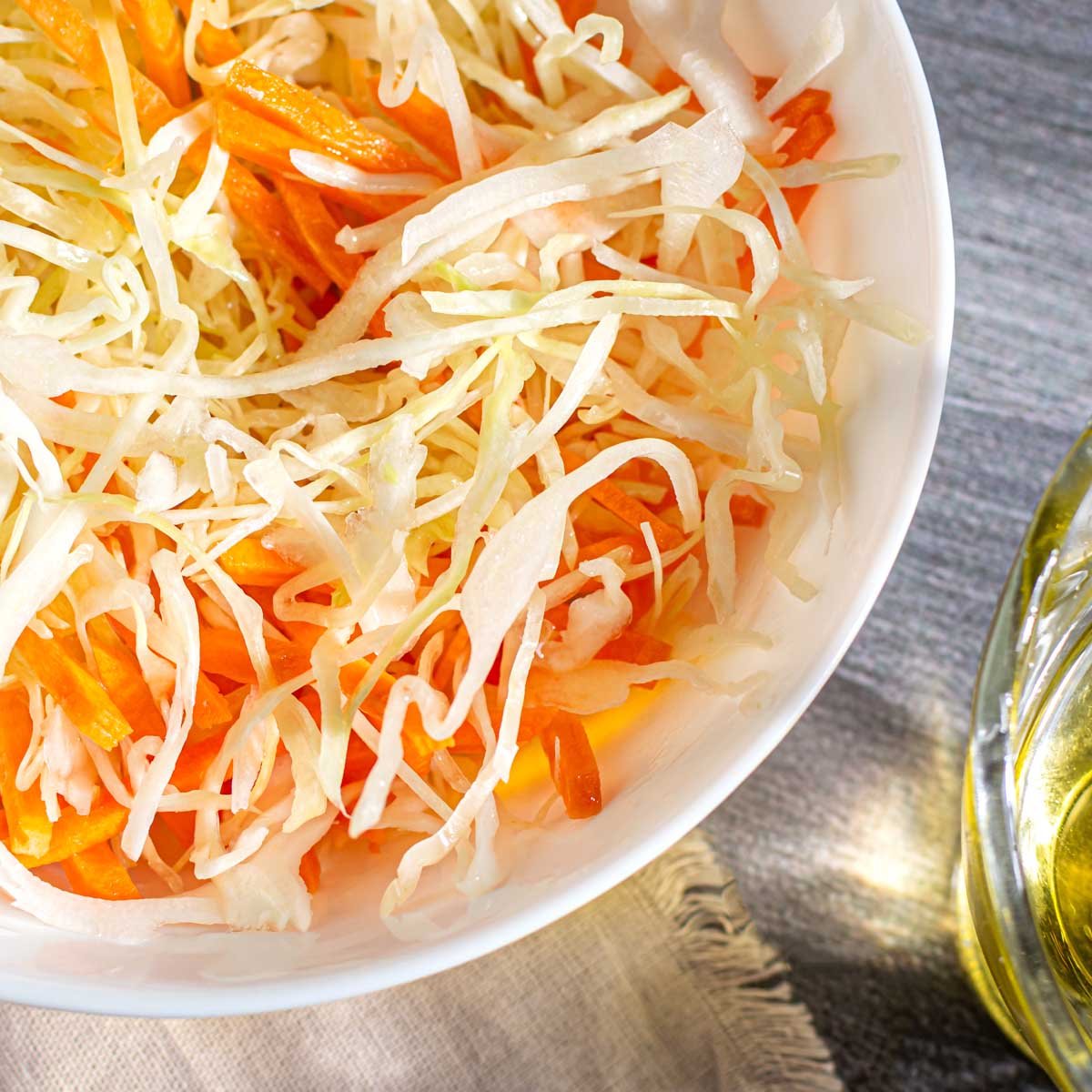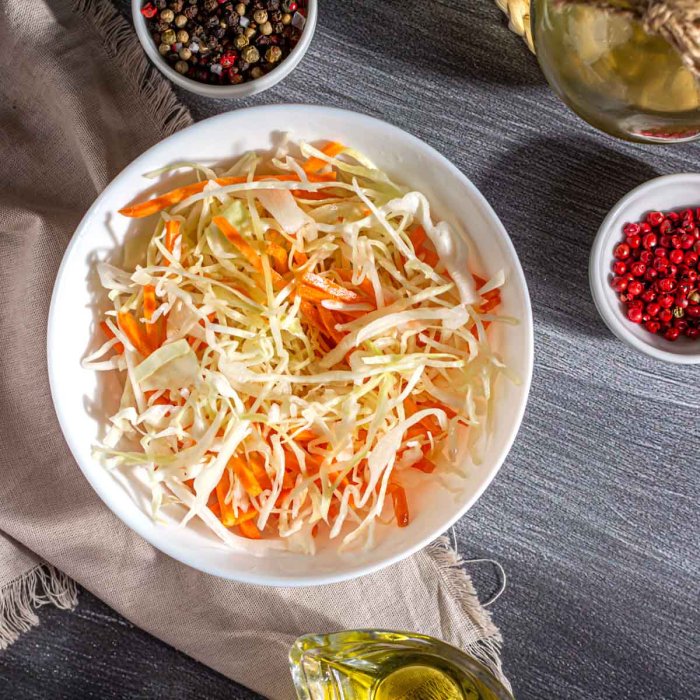 Хрустящий домашний салат из свежей капусты с морковью, сдобренный растительным маслом. Легкая сочная закуска идеально подходит для того, чтобы «раздразнить» аппетит перед основным блюдом.