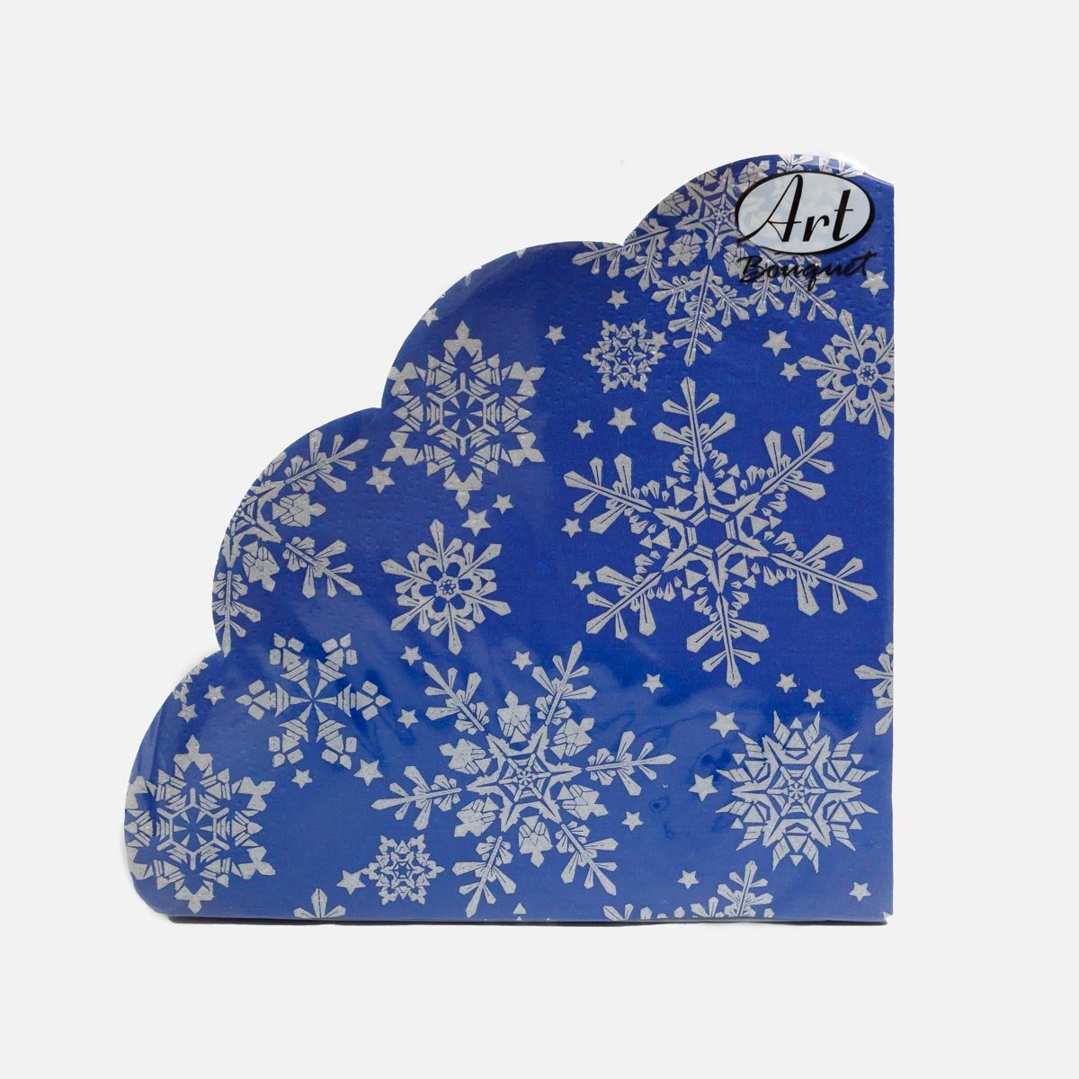 Салфетки Арт букет Серебро снежинки на синем рондо 3сл 12шт