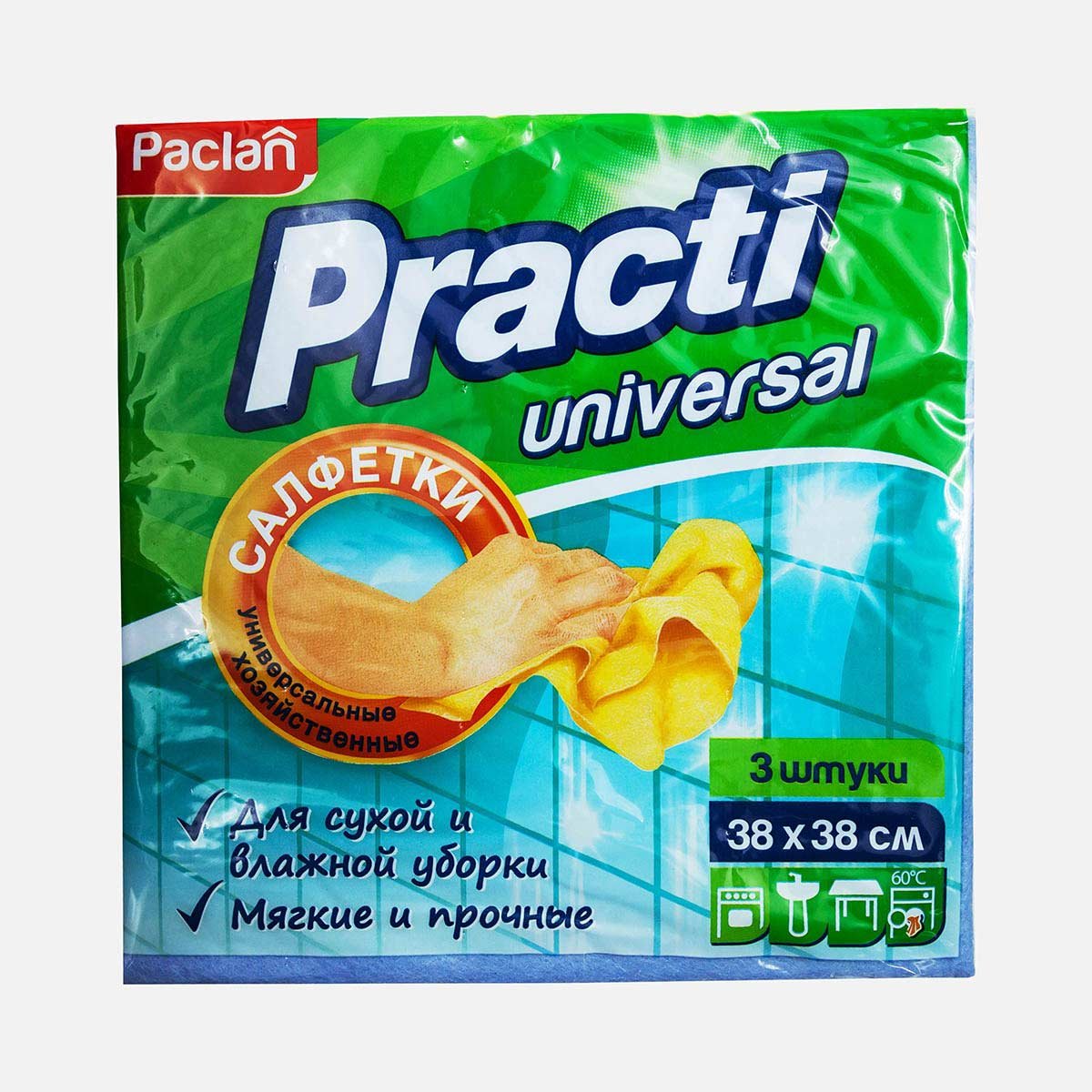 Салфетки Паклан д/уборки из неткан полотна 38х38см 3шт