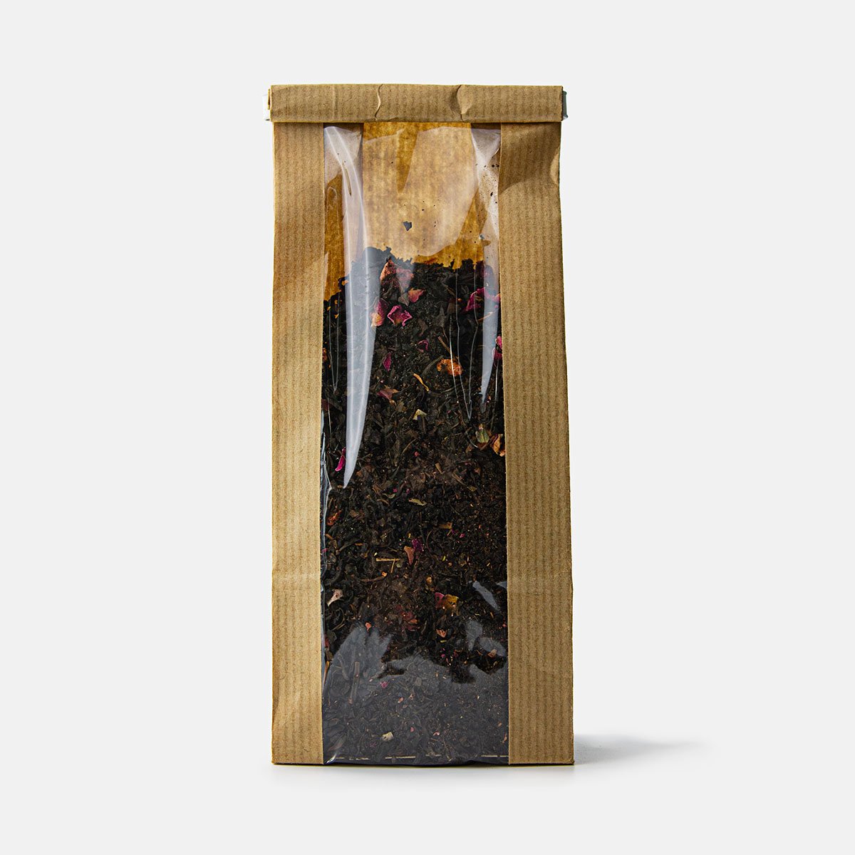 Черный чай, черный тутовник, кусочки клубники, лепестки роз, ароматизатор идентичный натуральному.