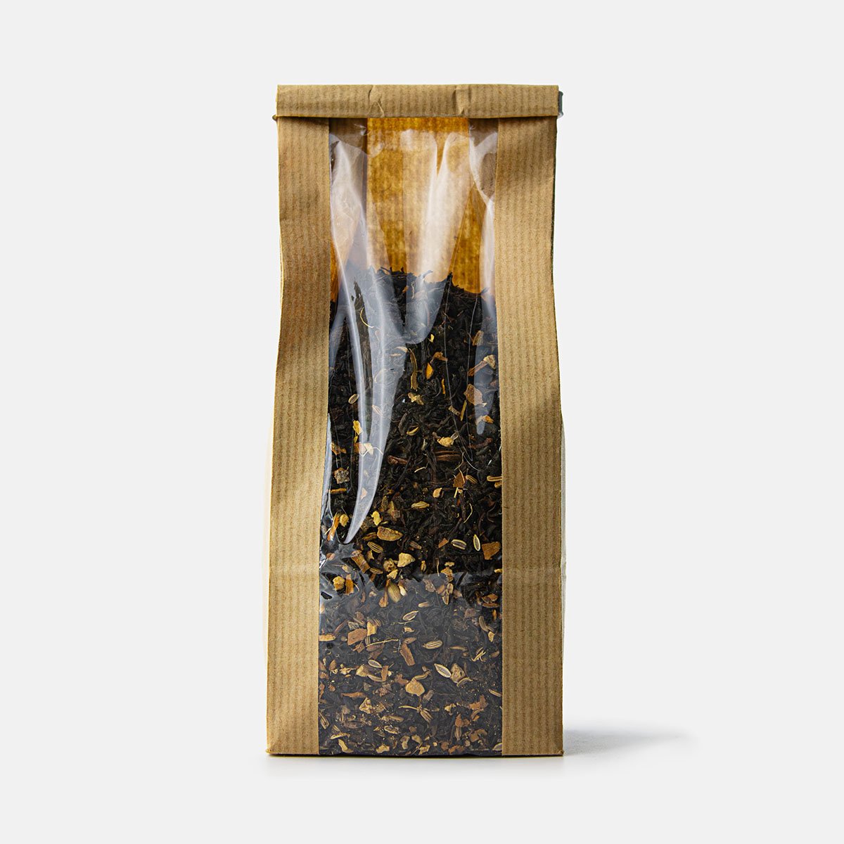 Черный чай, имбирь, корица, бадьян, кардамон, фенхель, гвоздика, черный перец горошек.