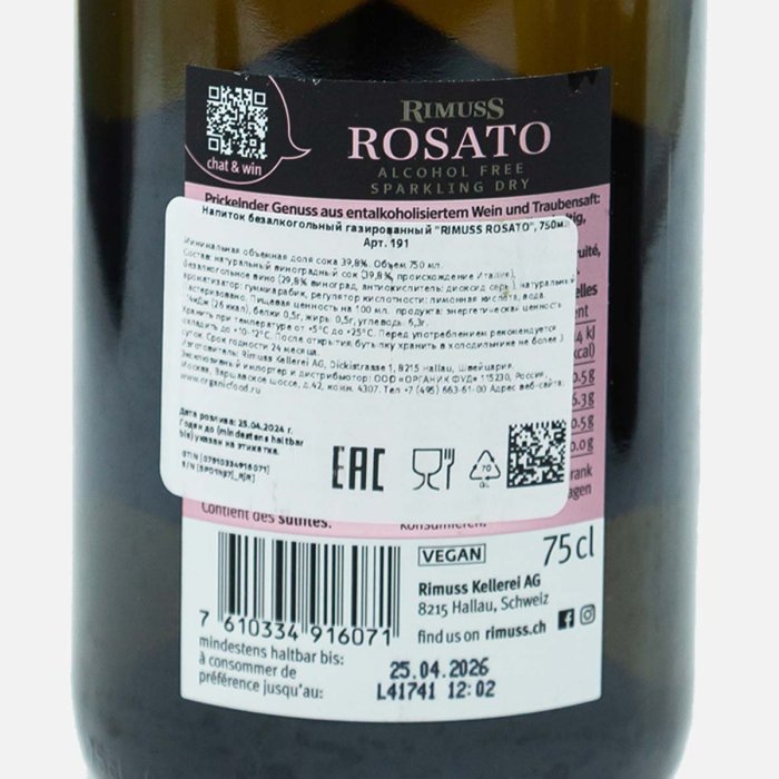 Шампанское Римусс Розато б/алк сух 750мл