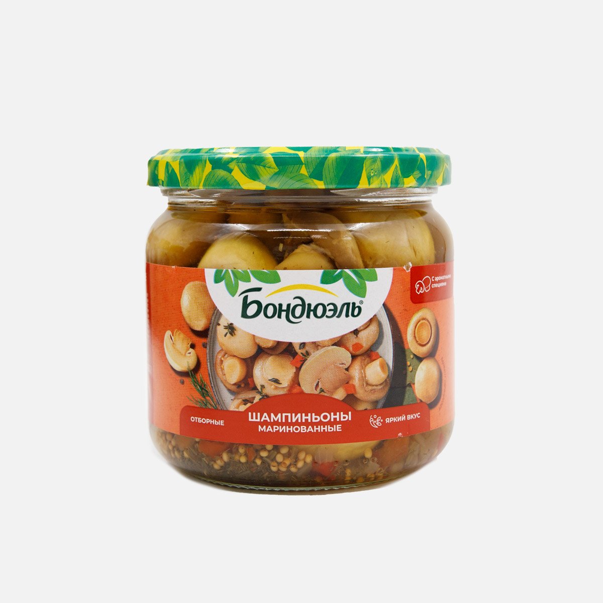 Шампиньоны Бондюэль целые отборные маринованные ст/б 350мл