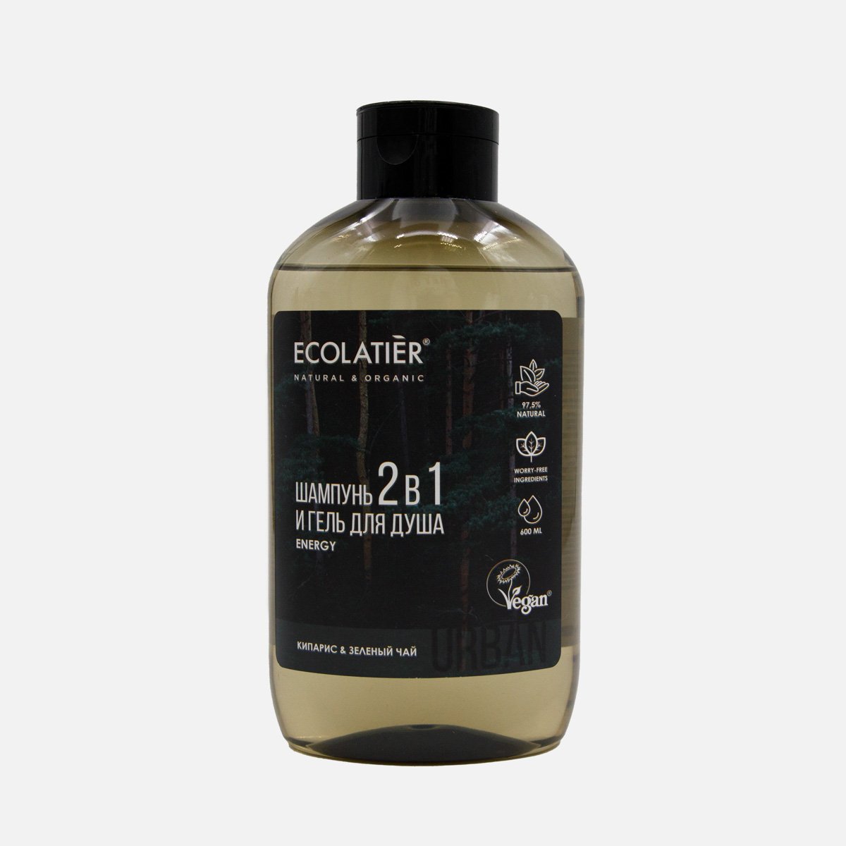Шампунь-гель Эколатье Урбан кипарис/зел чай мужской 2в1 600мл