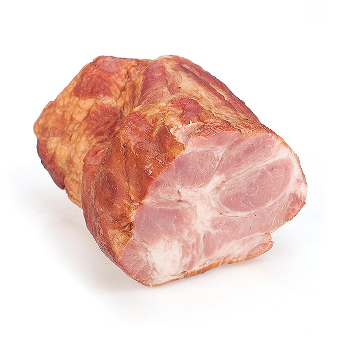 Деликатесная свиная шейка холодного копчения с тонкой жировой прослойкой и очень нежным вкусом. Свиную шейку солят, сдабривают пряностями и выдерживают в темном холодном месте 7 дней. После коптят холодным дымом на буковых щепках.