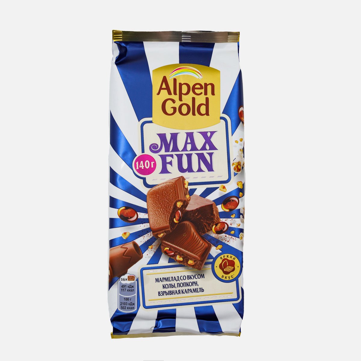Шоколад Альпен Гольд МаксФан марм со вк колы/попкор/карам 140г