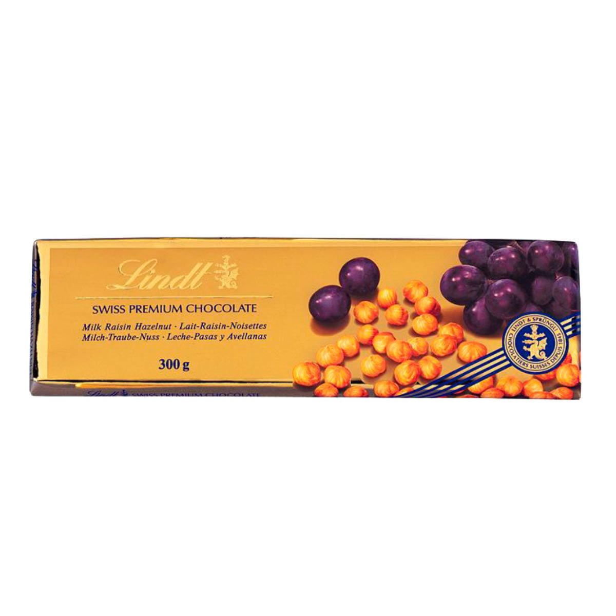 Шоколад Линдт Голд молоч с фундуком и изюмом 300г