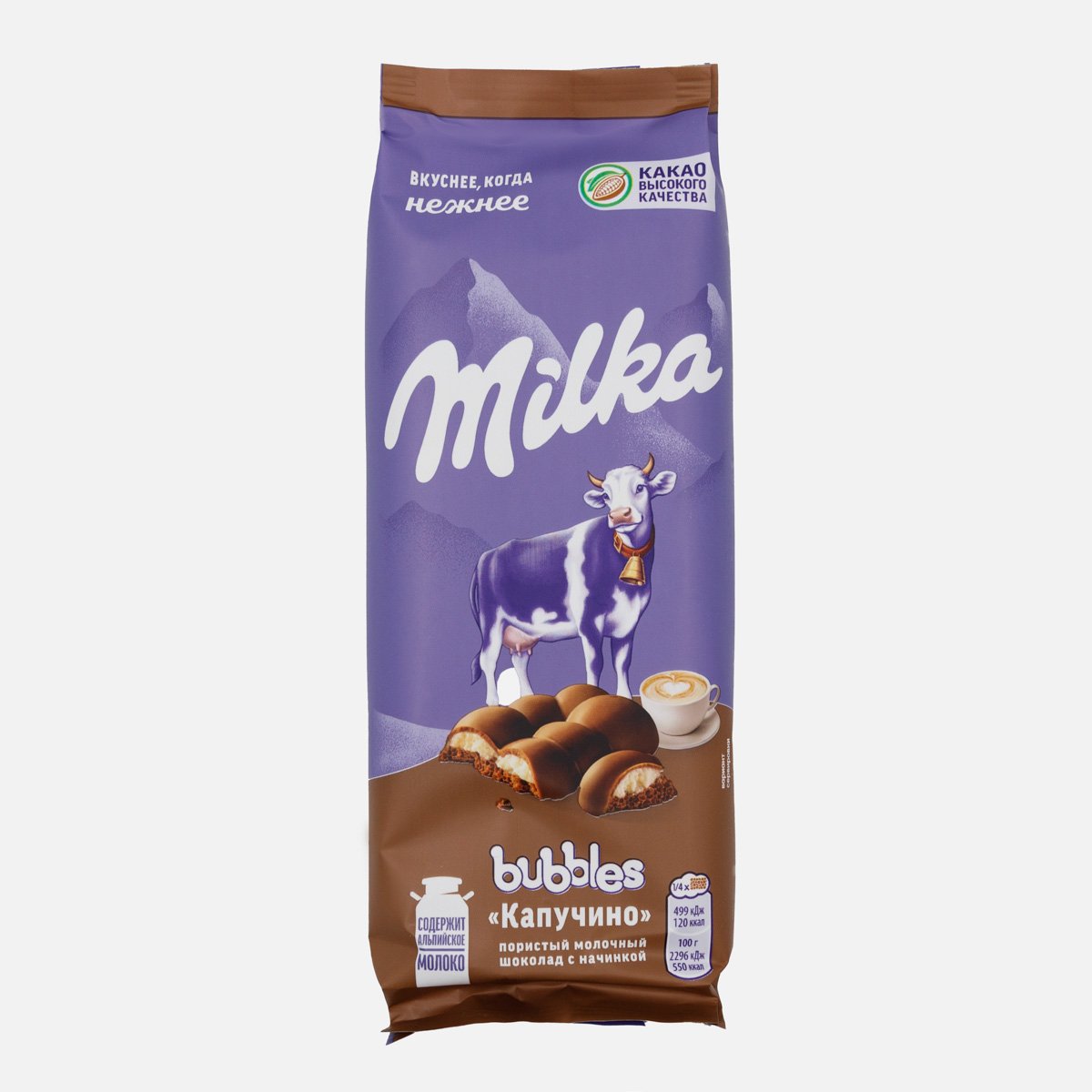 Шоколад Милка Баблс молочный пористый с нач капучино 87г