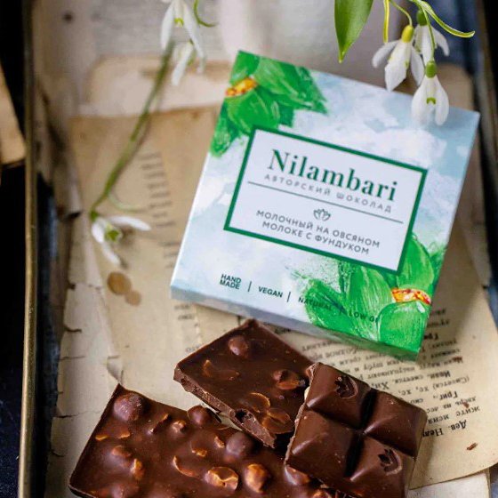 Шоколад Ниламбари с фундуком на овсяном молоке молочный к/к 65г