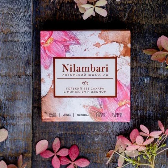 Шоколад Ниламбари с миндалем и изюмом горький без сахара к/к 65г