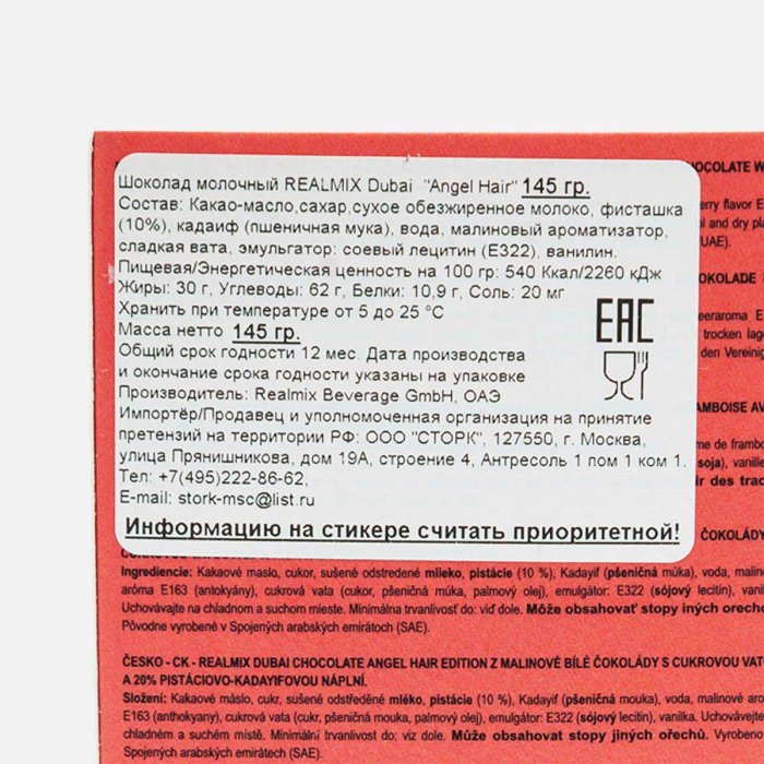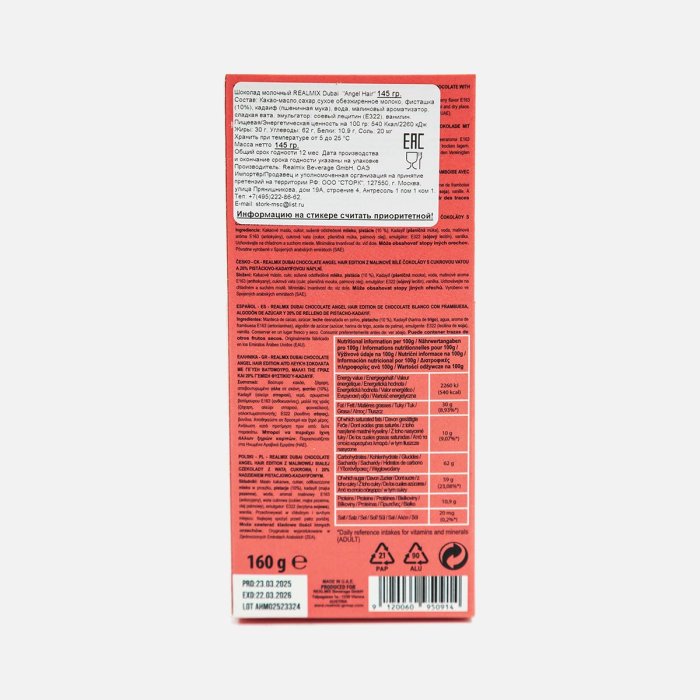 Шоколад Риалмикс Дубай Энжел Хэа 145г