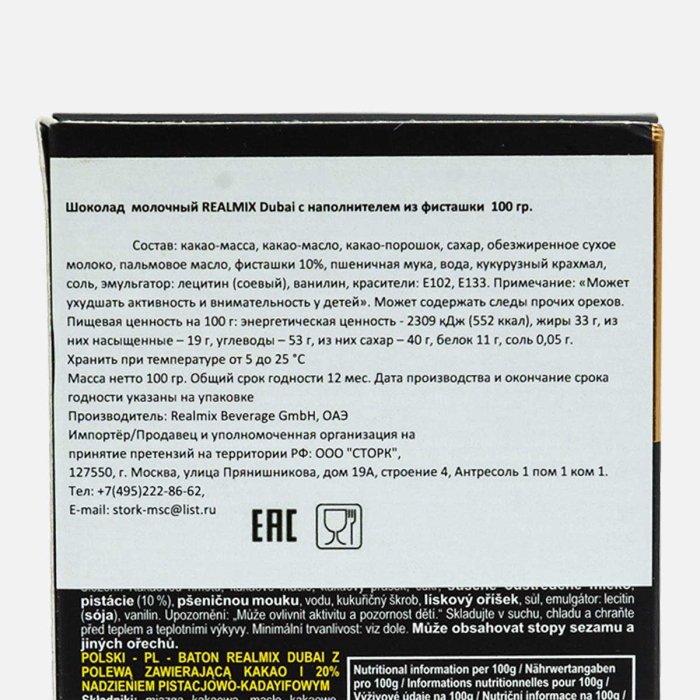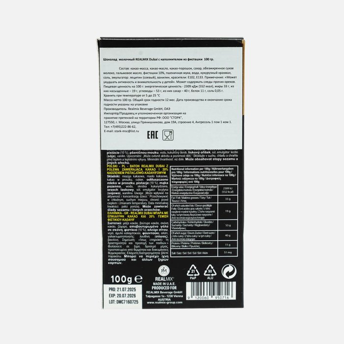 Шоколад Риалмикс Дубай Пистачио Кунафа 100г