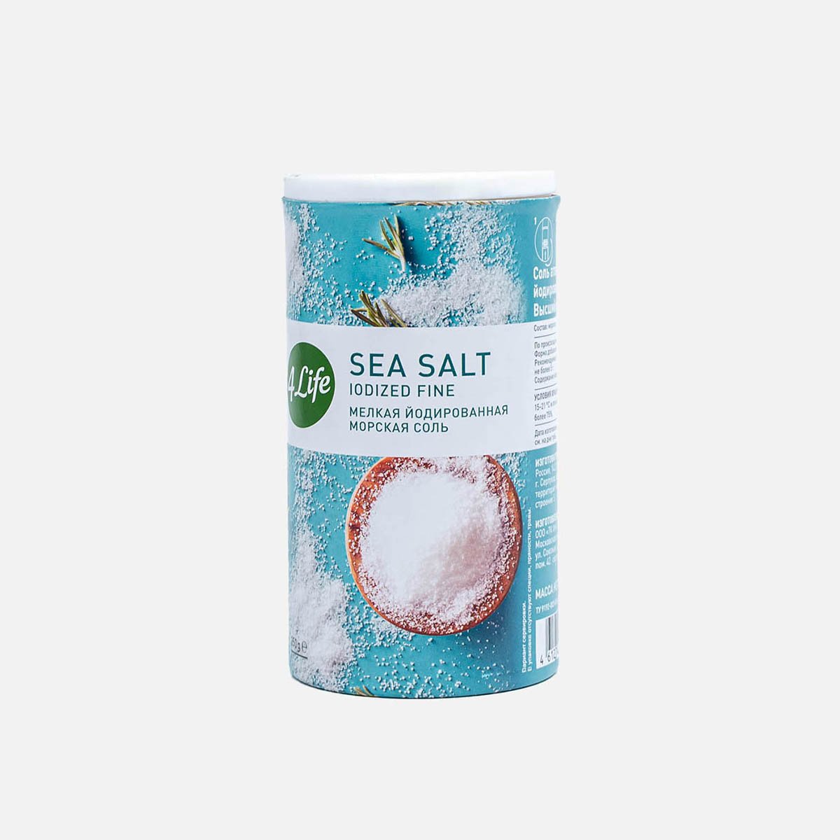 Соль 4Лайф морская йодированная мелкая в/с помол №0 пл/б 250г