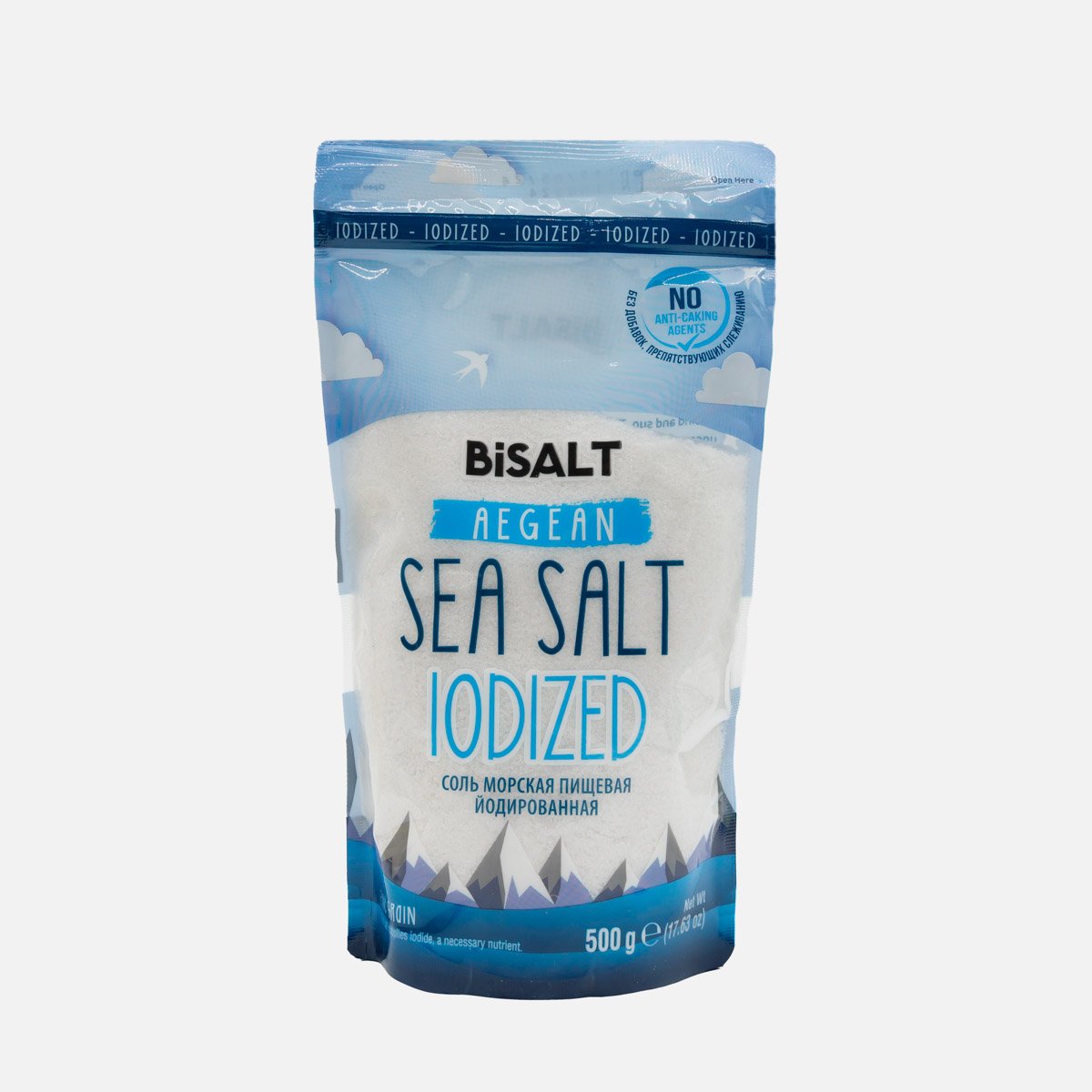 Соль БиСолт морская пищевая мелкая йодированная садочная дой/пак 500г