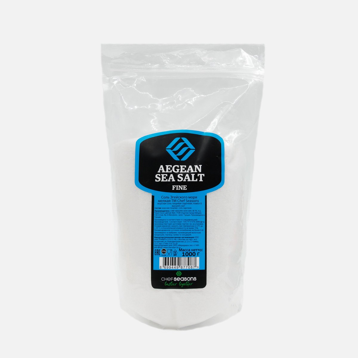 Соль Шеф Сизонс Эгейского моря пищевая мелкая дой/пак 1000г