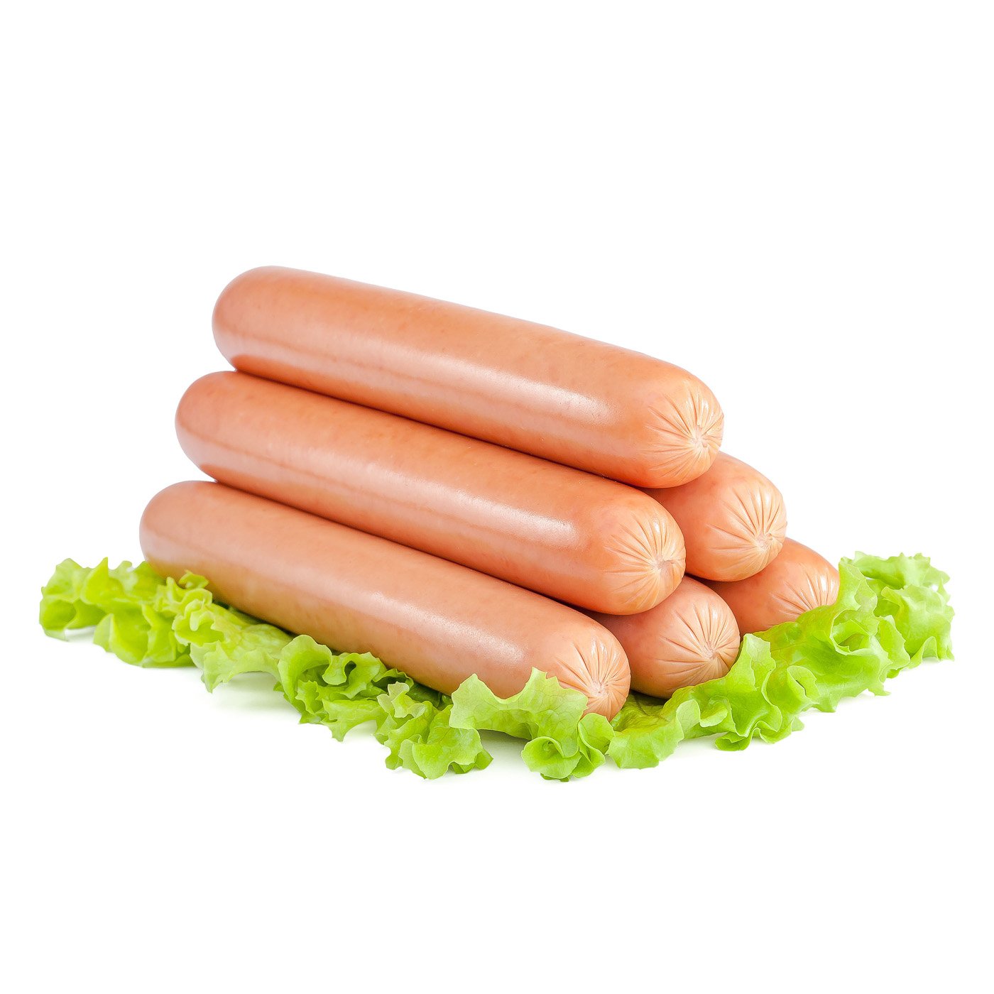 Вареные сосиски нежно-розового цвета в натуральной оболочке. Фарш - смесь говядины, свинины и птицы с добавлением сухого молока. Готовые сосиски имеют аромат свежих сливок.