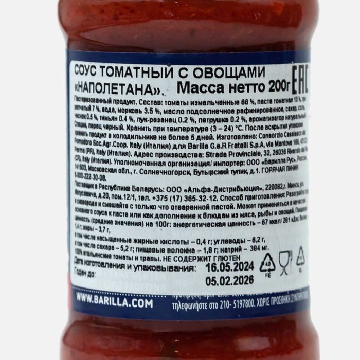 Соус Барилла Наполетана томатный с овощами ст/б 200г