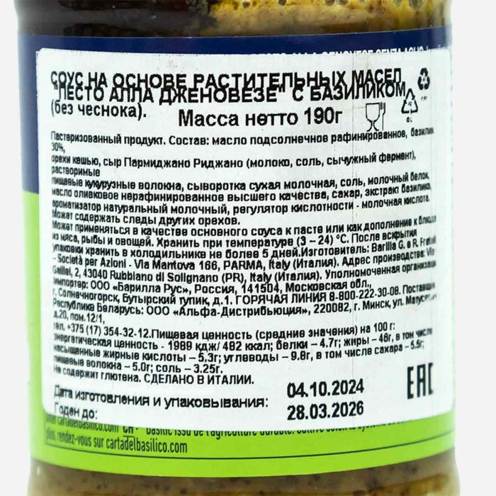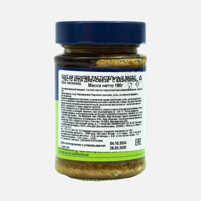 Соус Барилла Песто Алла Дженовезе с базиликом без чеснока ст/б 190г