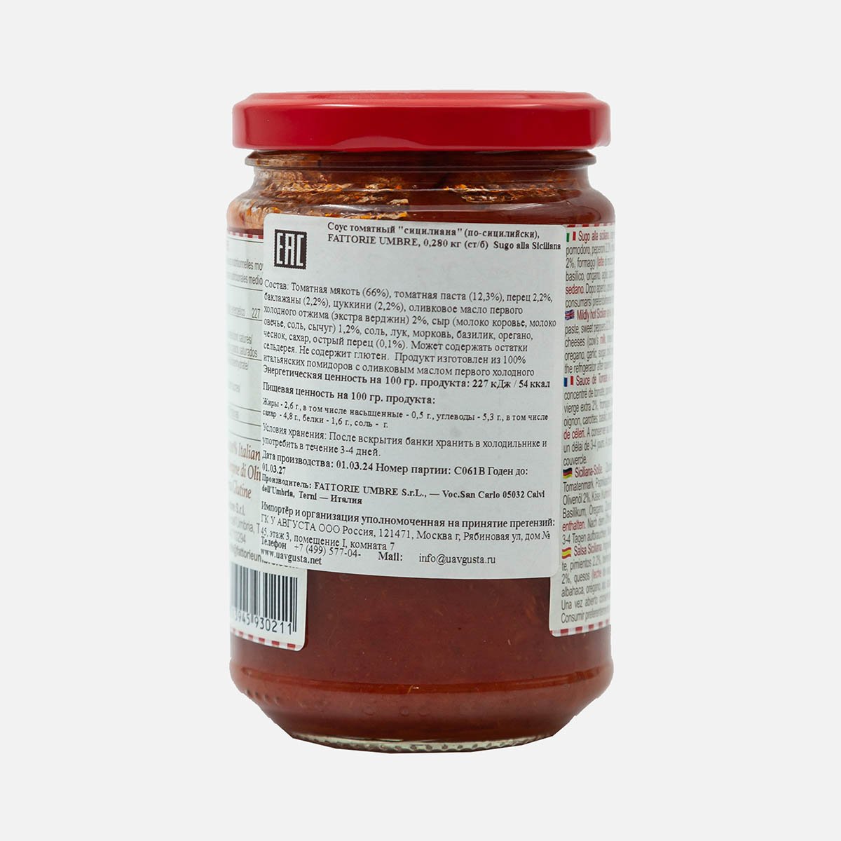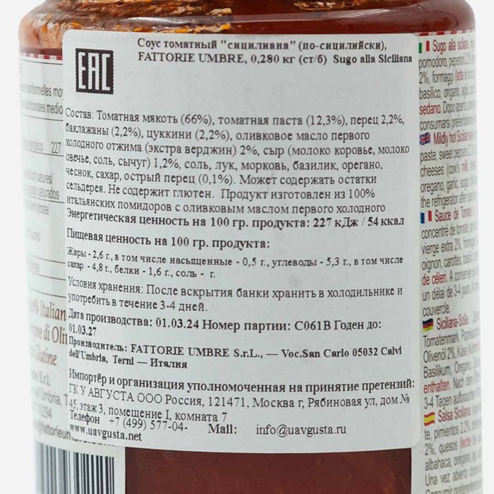 Соус Фаттория Умбре Сицилиана по-сицилийски томатный ст/б 280г