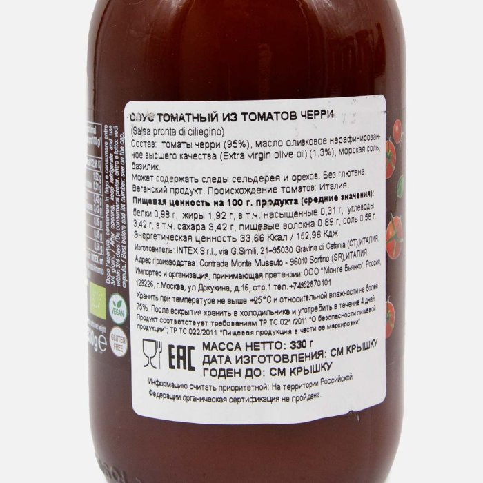 Соус Конвивиа из томатов черри Био ст/б 330г