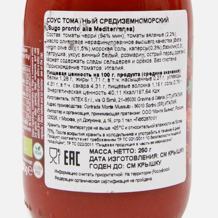 Соус Конвивиа из томатов черри Средиземноморский Био ст/б 250г