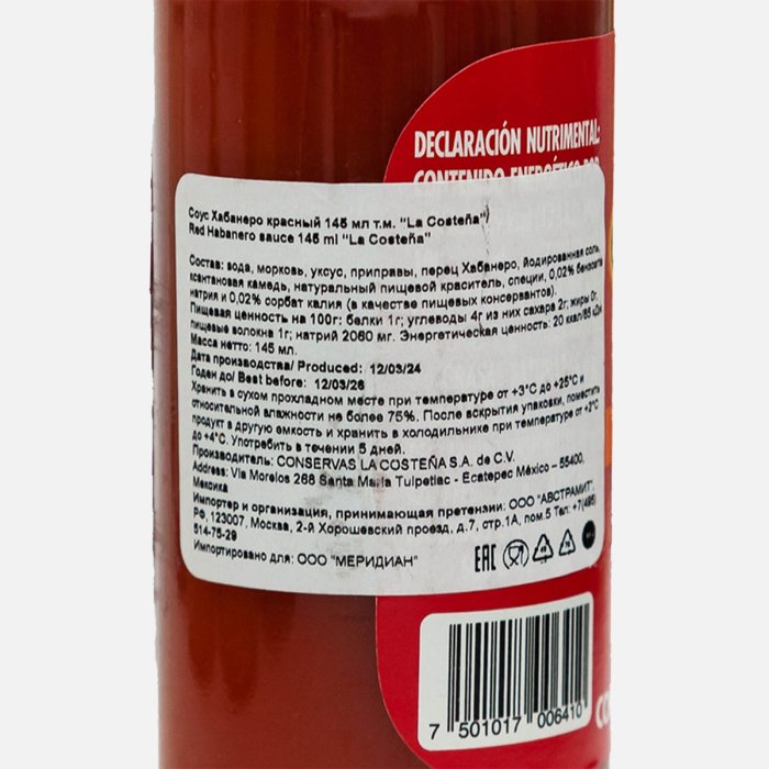 Соус Ла Костена Хабанеро красный ст/б 145мл