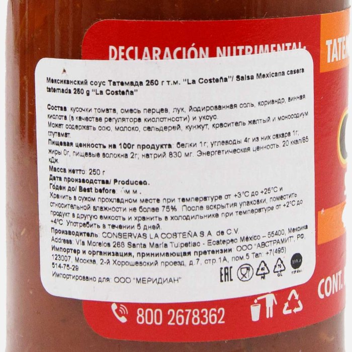 Соус Ла Костена Татемада Мексиканский ст/б 250г