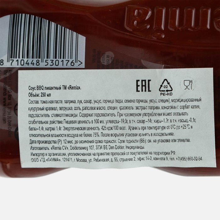 Соус Ремиа Патисаус BBQ пикантный 250мл