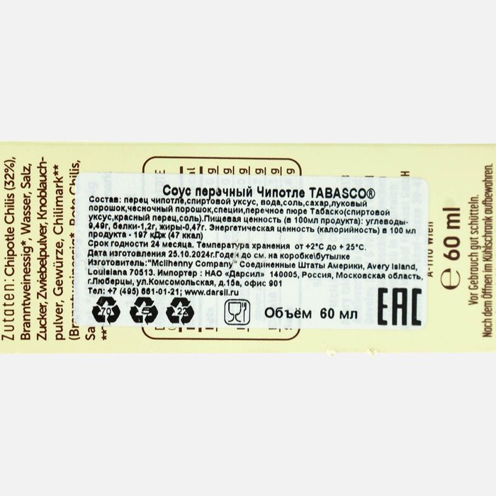 Соус Табаско перечный Чипотле ст/б 60мл
