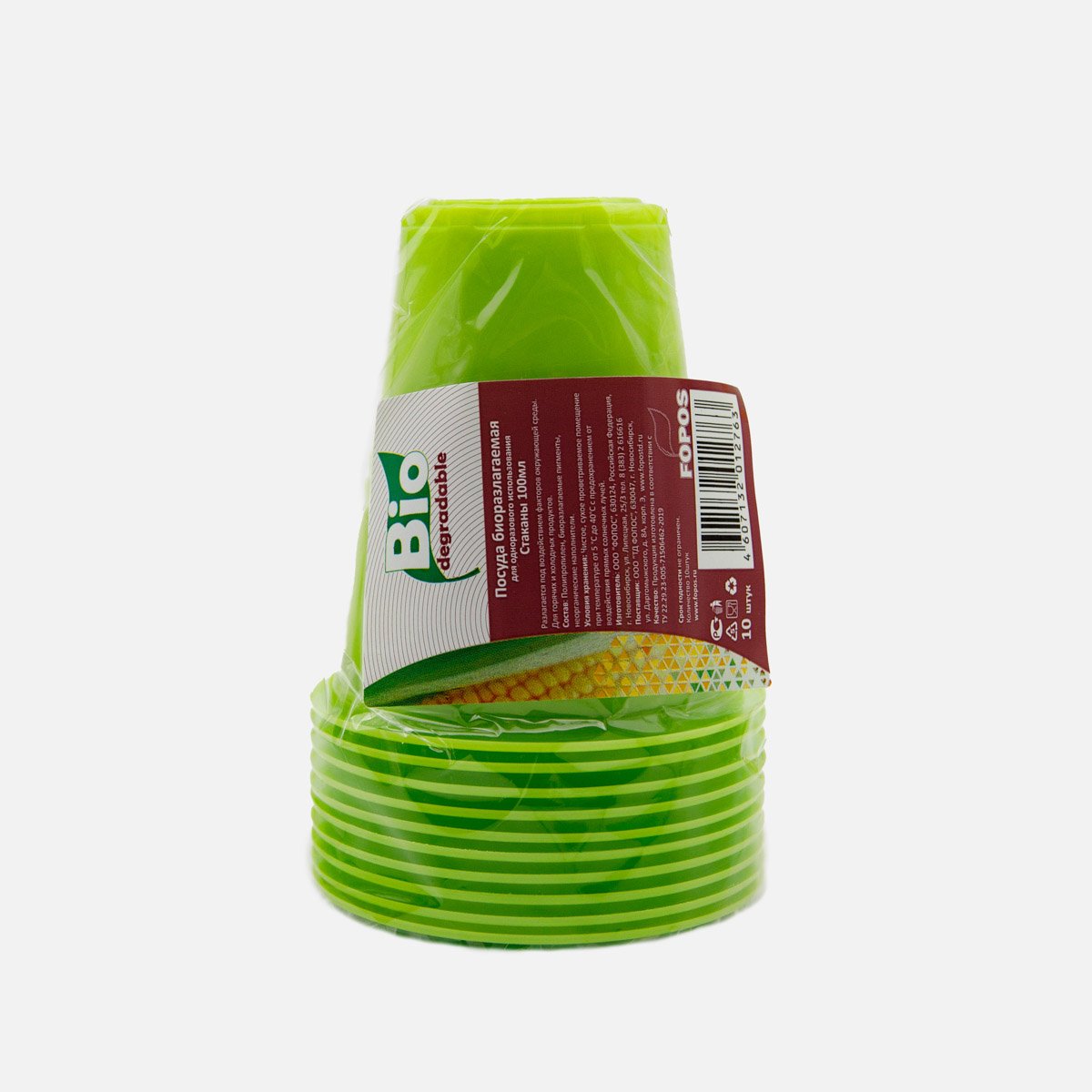 Стакан Фопос 100мл Био зеленый 10шт ПП 6*6*10см