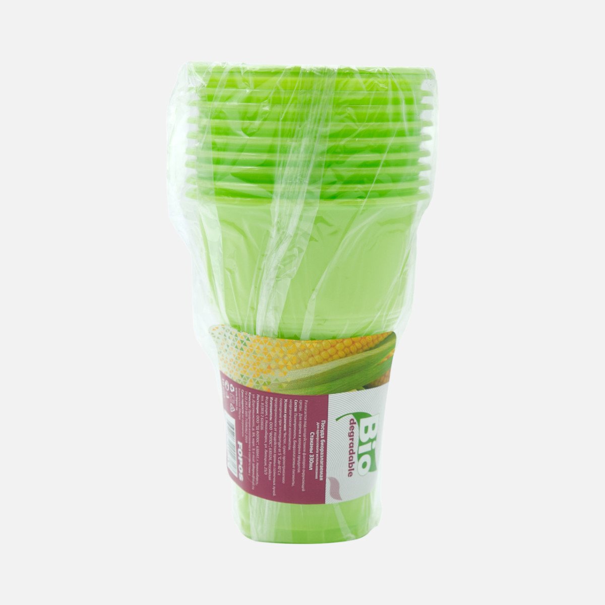 Стакан Фопос 330мл Био зеленый 10шт ПП 8*8*16см