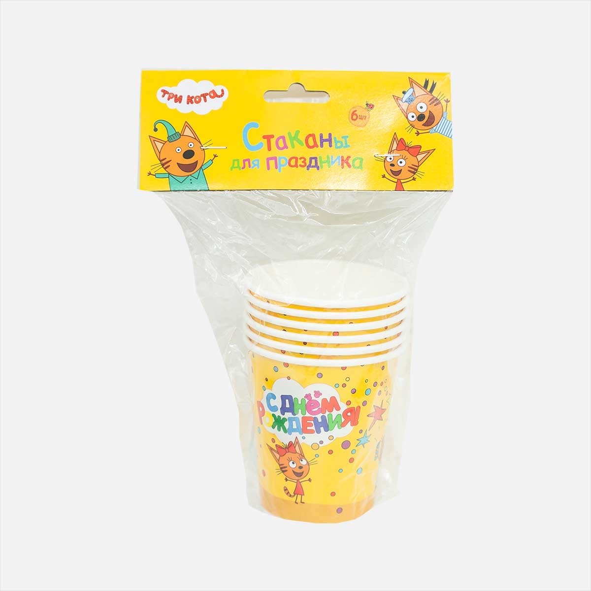 Стаканы д/праз 250мл Три Кота С Днем Рождения 11*8*8см бум 6шт