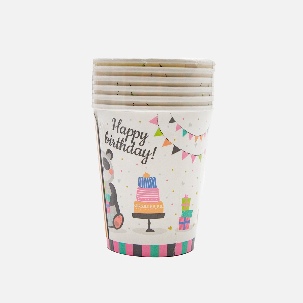 Стаканы Фиоленто Панда Фрэндли Биртхдэй 200мл бум 6шт 7,5*7,5*8см