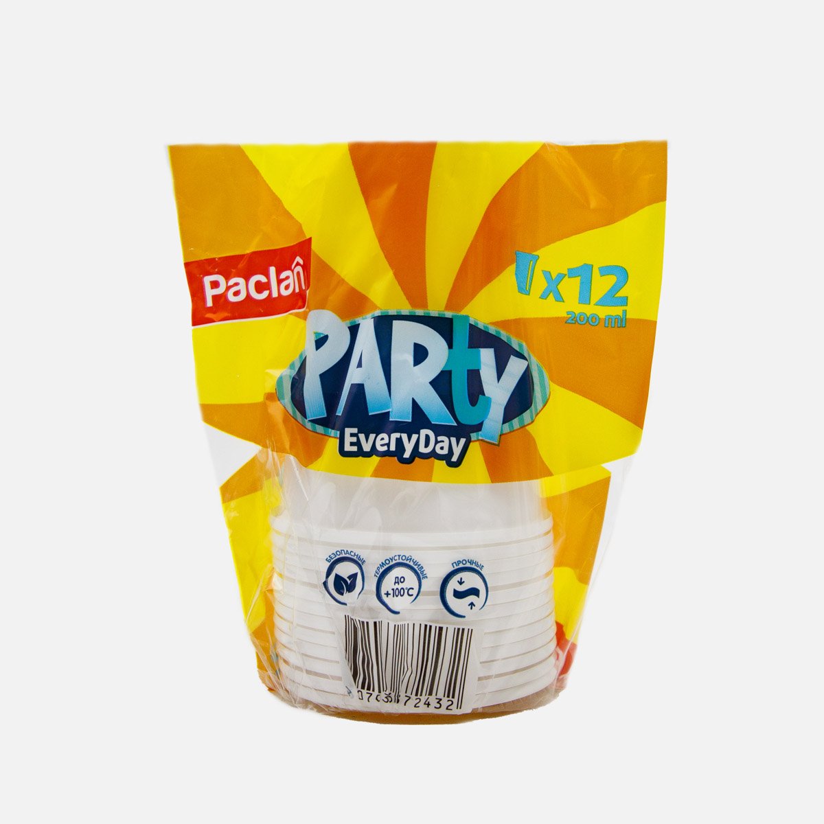Стаканы Паклан Пати Эври Дей белые пластик 200мл 12шт
