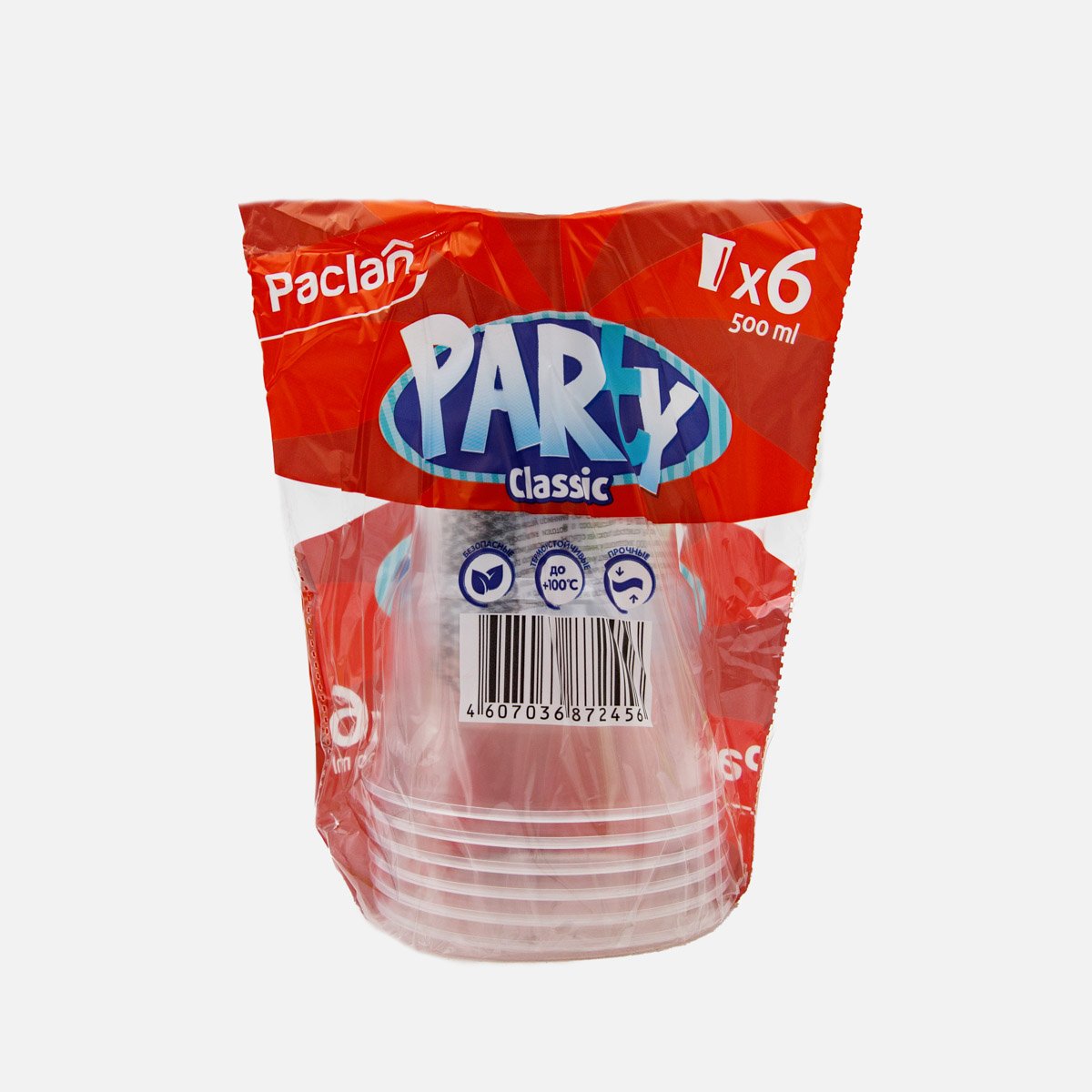 Стаканы Паклан Пати Классик прозрач пластик 500мл 6шт