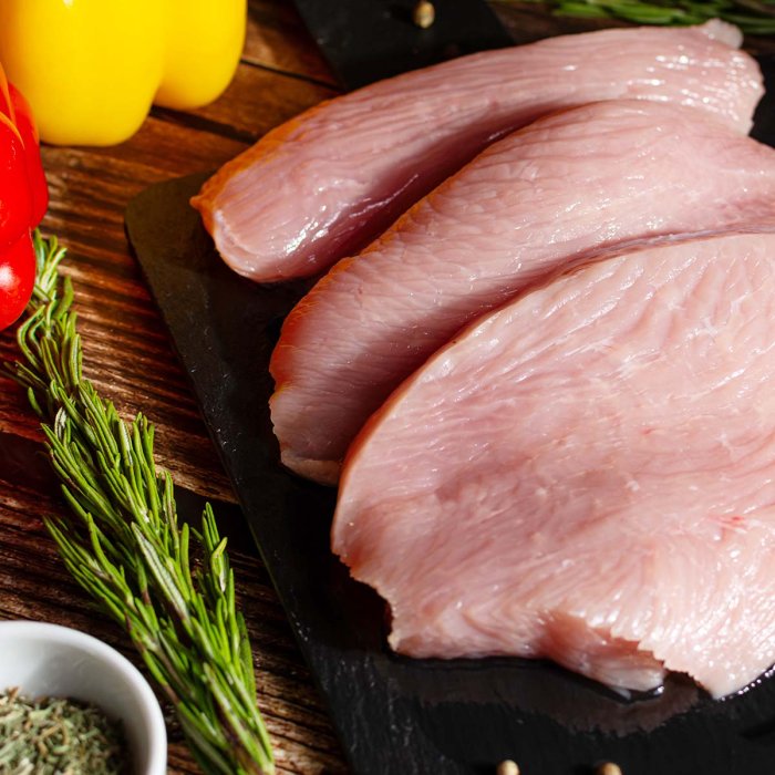 Порционные ломтики из белого мяса индейки, которые легко приготовить на сковороде, гриле или в духовке. Идеальный выбор для приверженцев правильного и здорового питания.