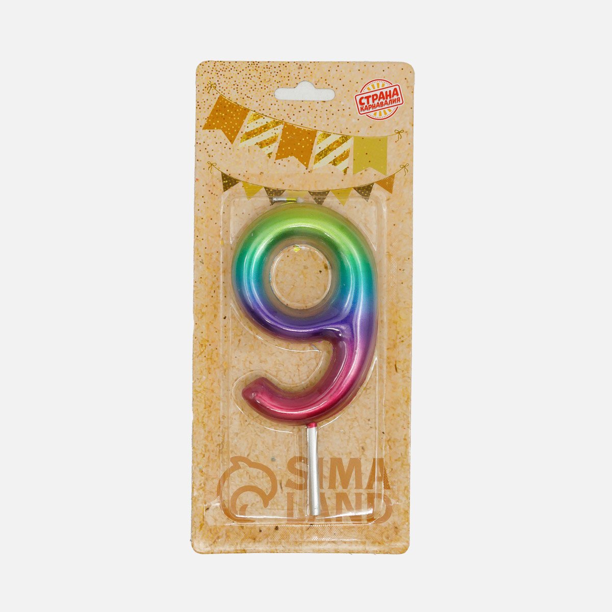 Свеча д/торта Акварель цифра 9 9см гигант 5311076