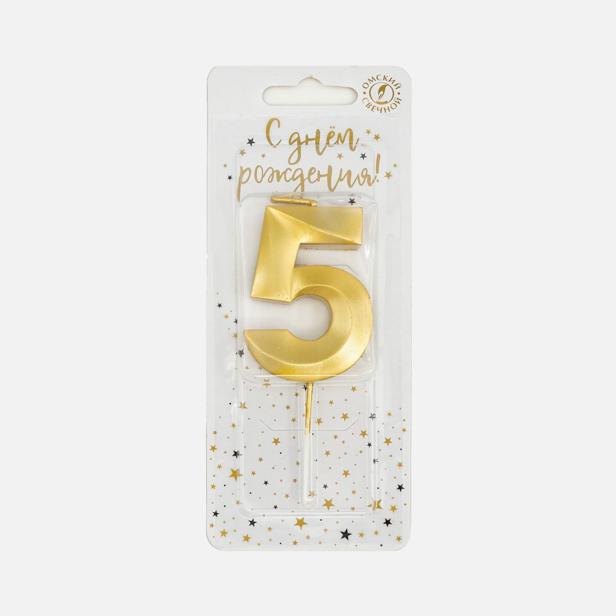Свеча Омский СЗ тортовая на шпажке 5 Золотые витые парафин 4х1,1х9,5