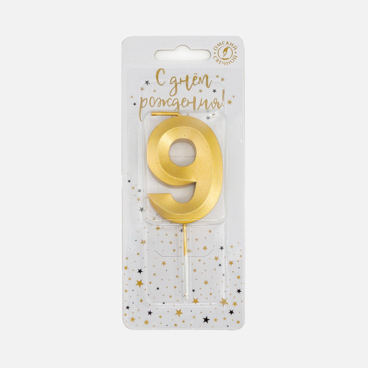 Свеча Омский СЗ тортовая на шпажке 9 Золотые витые парафин 4х1,1х9,5