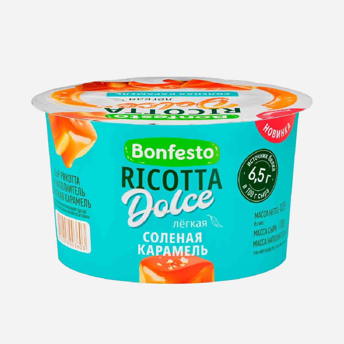 Сыр Бонфесто Рикотта Дольче Соленая карамель легкая мягкий 40% 125г