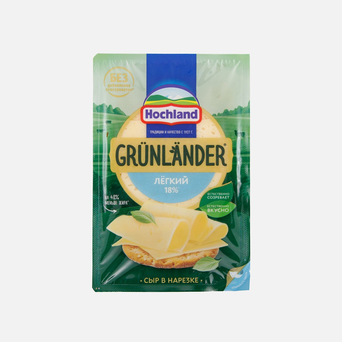 Сыр Хохланд Грюнландер Легкий п/тверд нарезка 35% пл/уп 130г