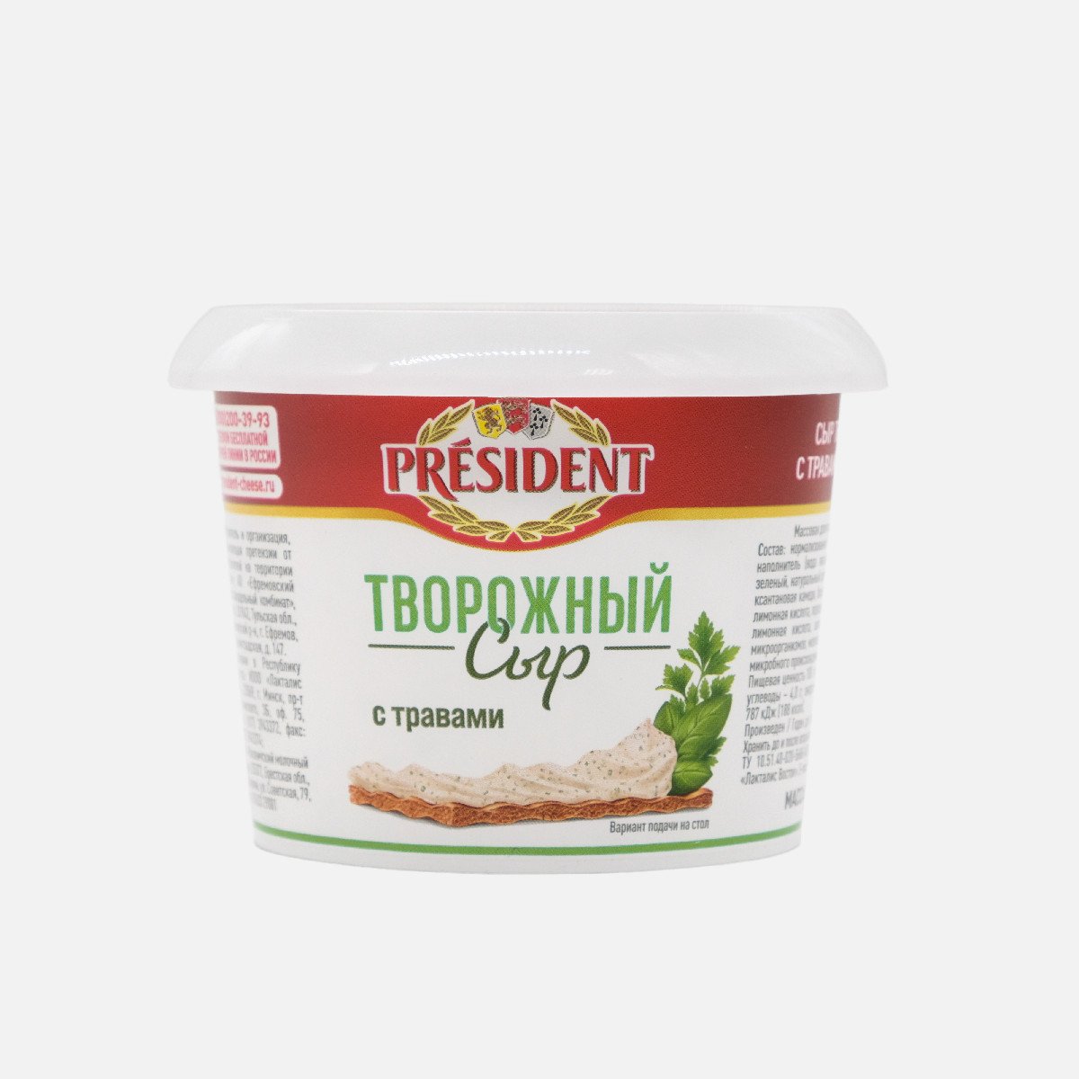 Сыр Президент творожный с травами 54% пл/ванна 140г