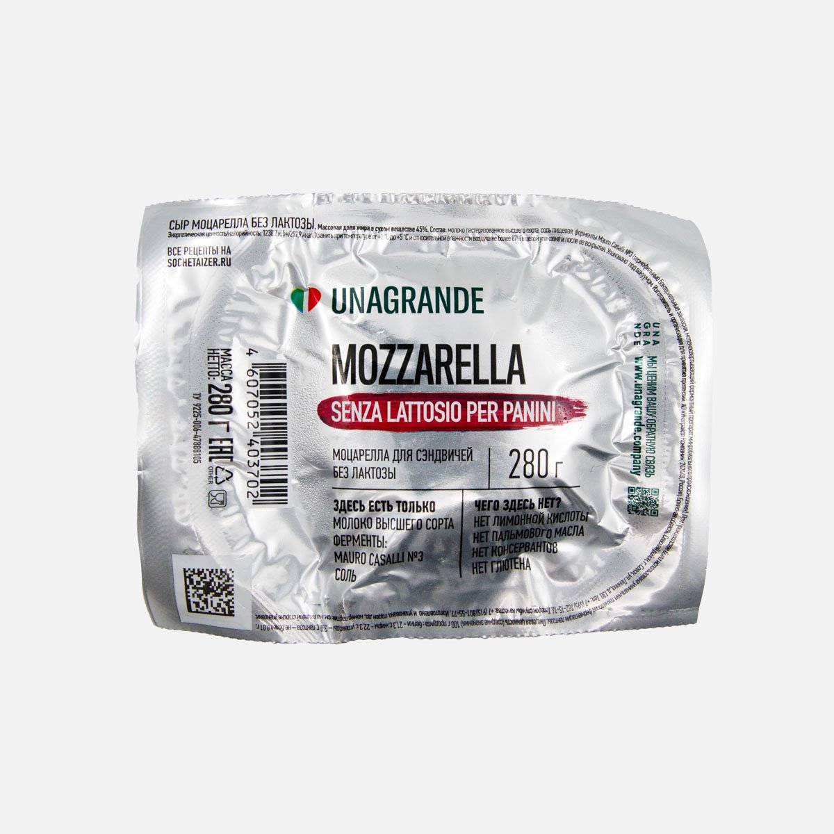 Сыр Унагранде Моцарелла без лактозы для сэндвичей 45% пл/ст 280г
