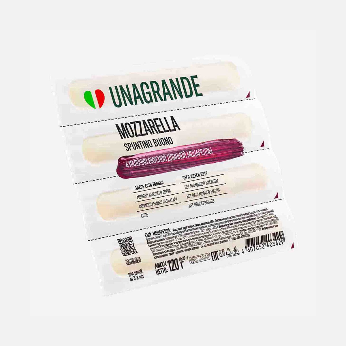 Сыр Унагранде Моцарелла палочки 45% пл/уп 120г